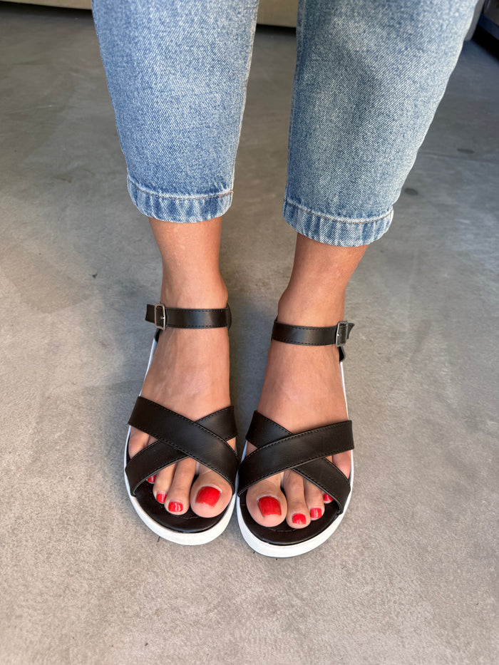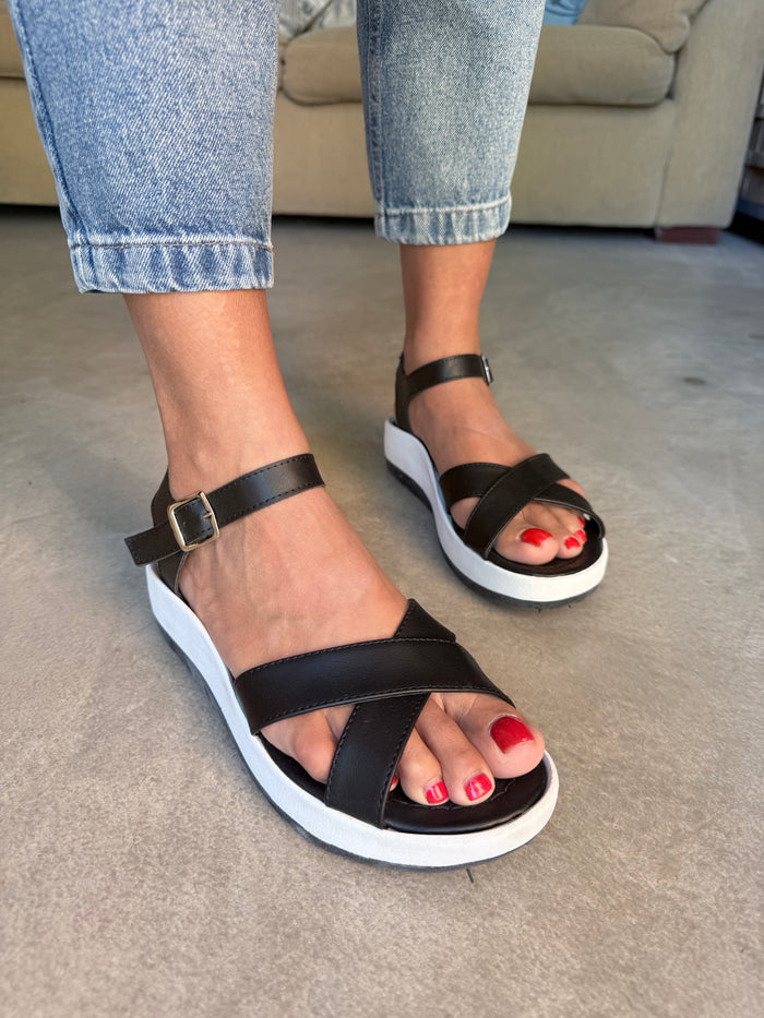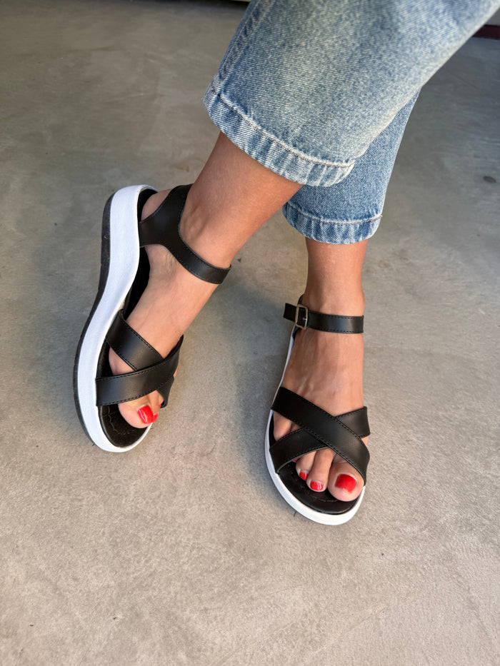 SANDALIAS ALESSIA TIRAS CRUZADAS Y PULSERA (NEGRO)