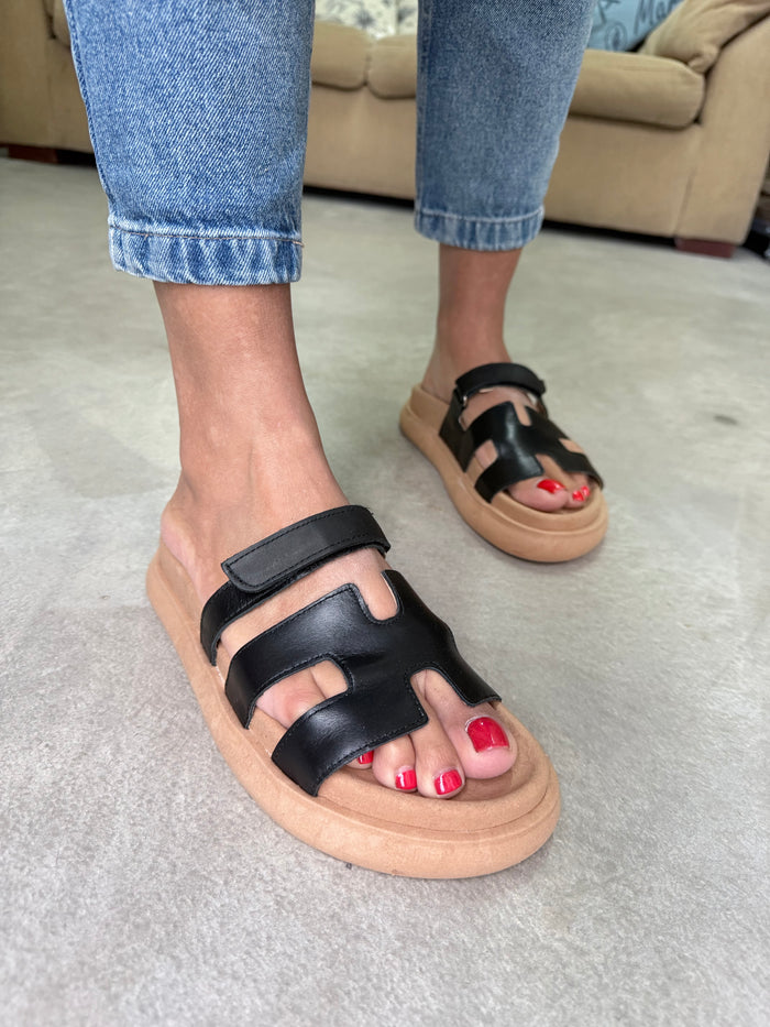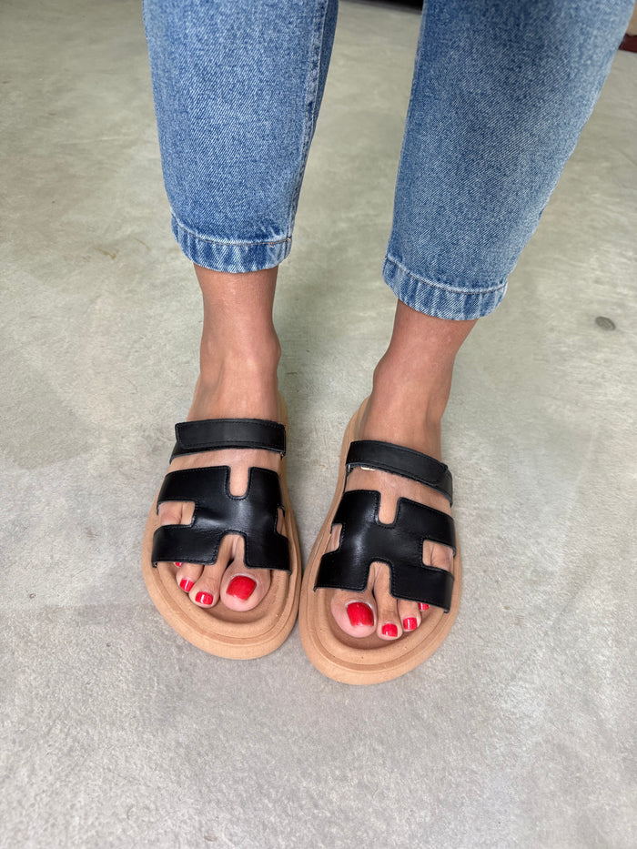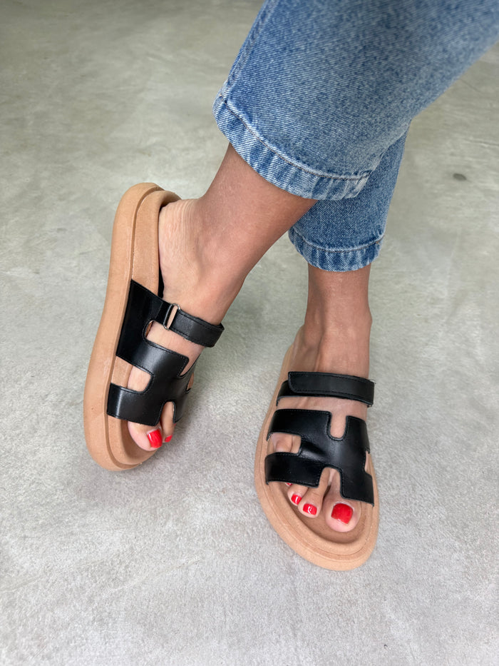 SANDALIAS FAJA HERMES BASE CAPELLADA CUERO TIRA ABROJO (NEGRO)