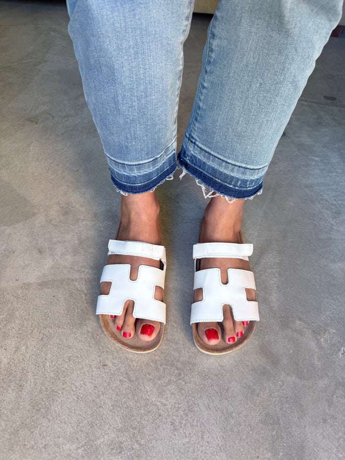 SANDALIAS FAJA HERMES CAPELLADA CUERO TIRA ABROJO (BLANCO)