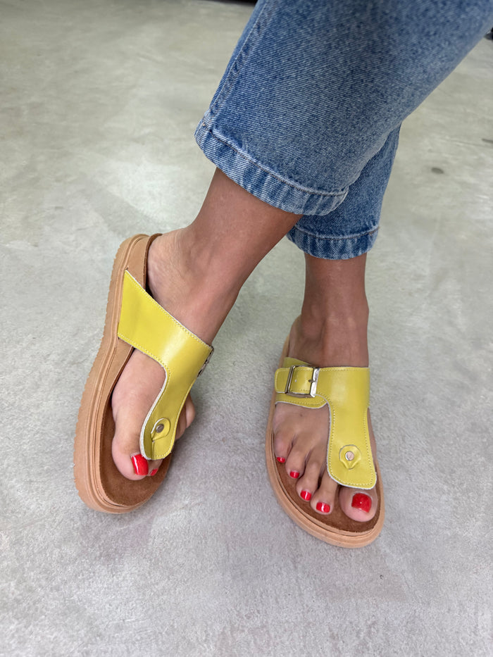 SANDALIAS OJOTA DOLLY CUERO (MOSTAZA)
