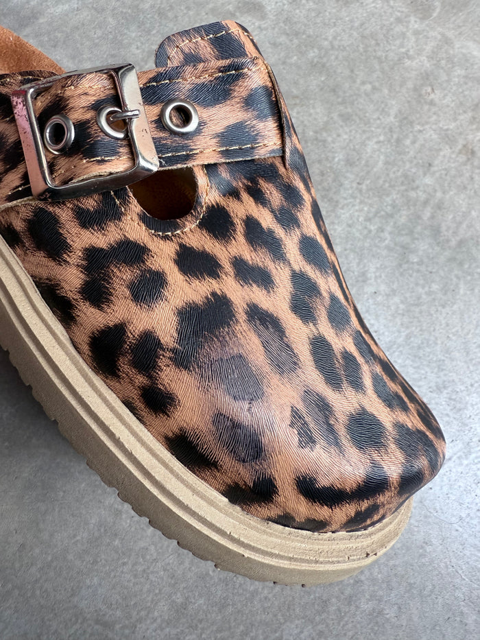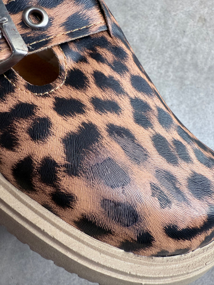 ZUECO 2da selección PUNTA REDONDA con TIRA y HEBILLA LATERAL LEOPARDO