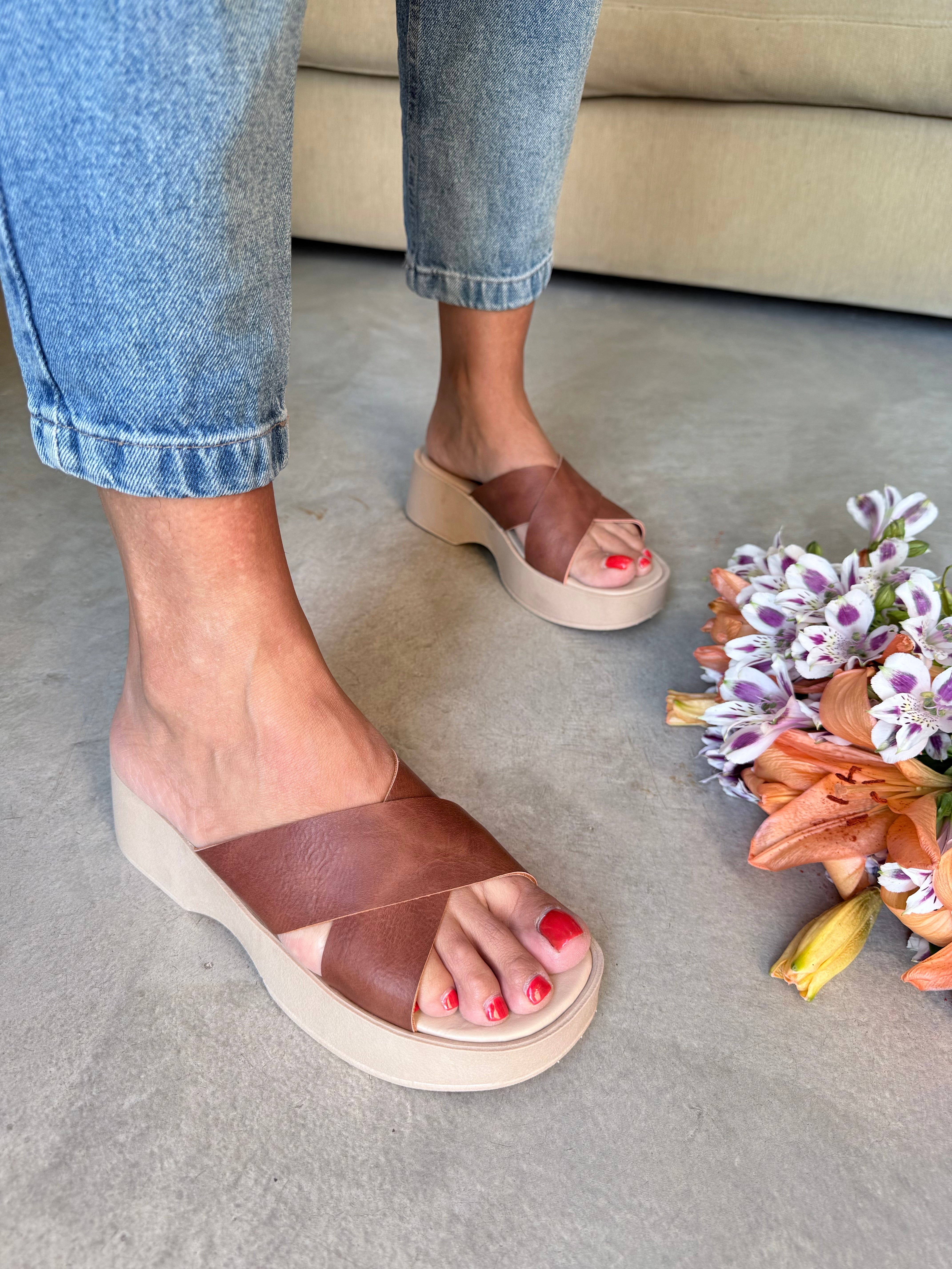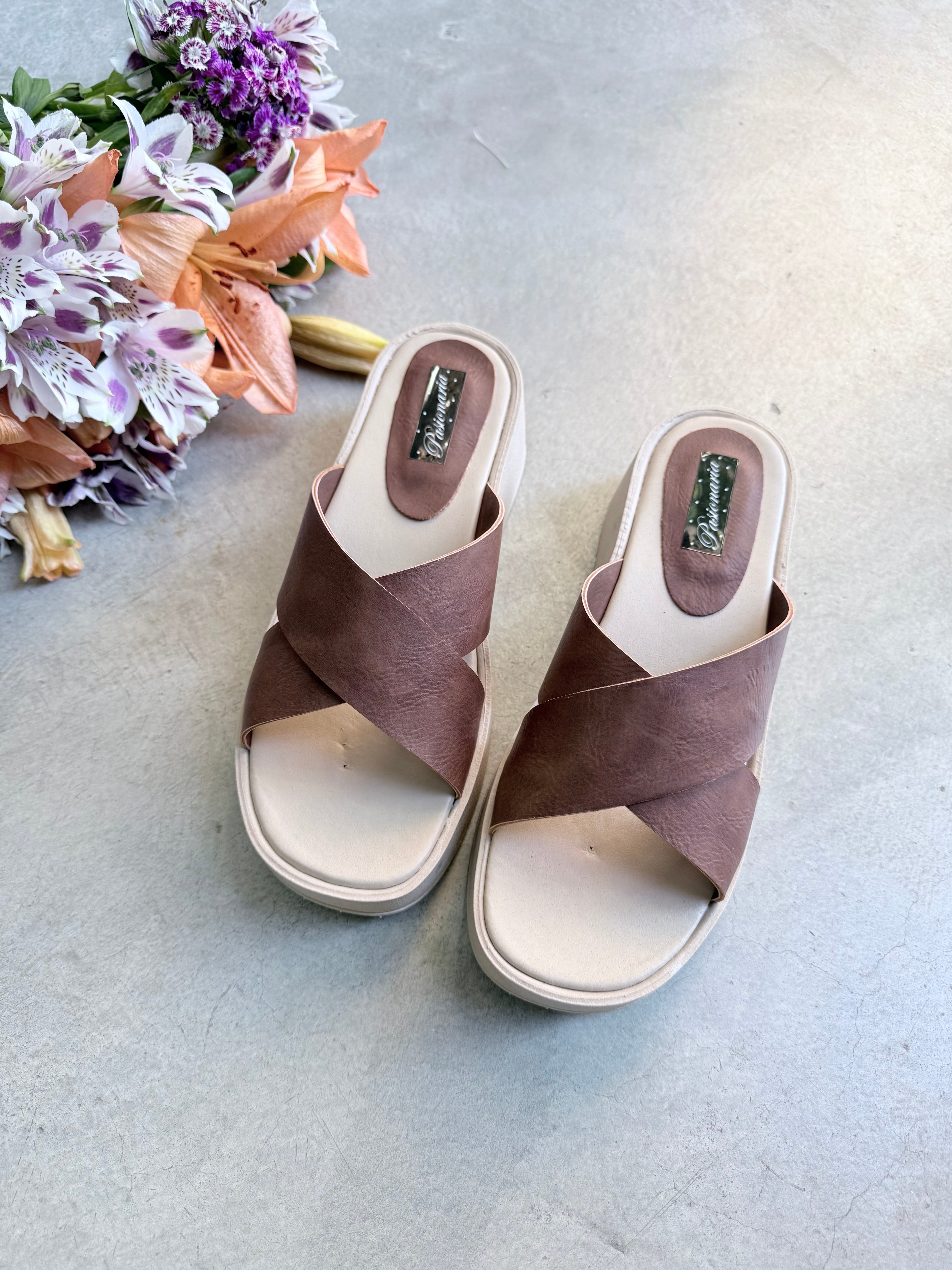INFORMACIÓN DEL PRODUCTO:-Color: Chocolate-Material Capellada: P.U. (Cuero Ecológico)-Material Plataforma: Expanso-Base: Gondola-Altura de Plataforma: 2,5 cm.-Altura de Taco: 4 cm.