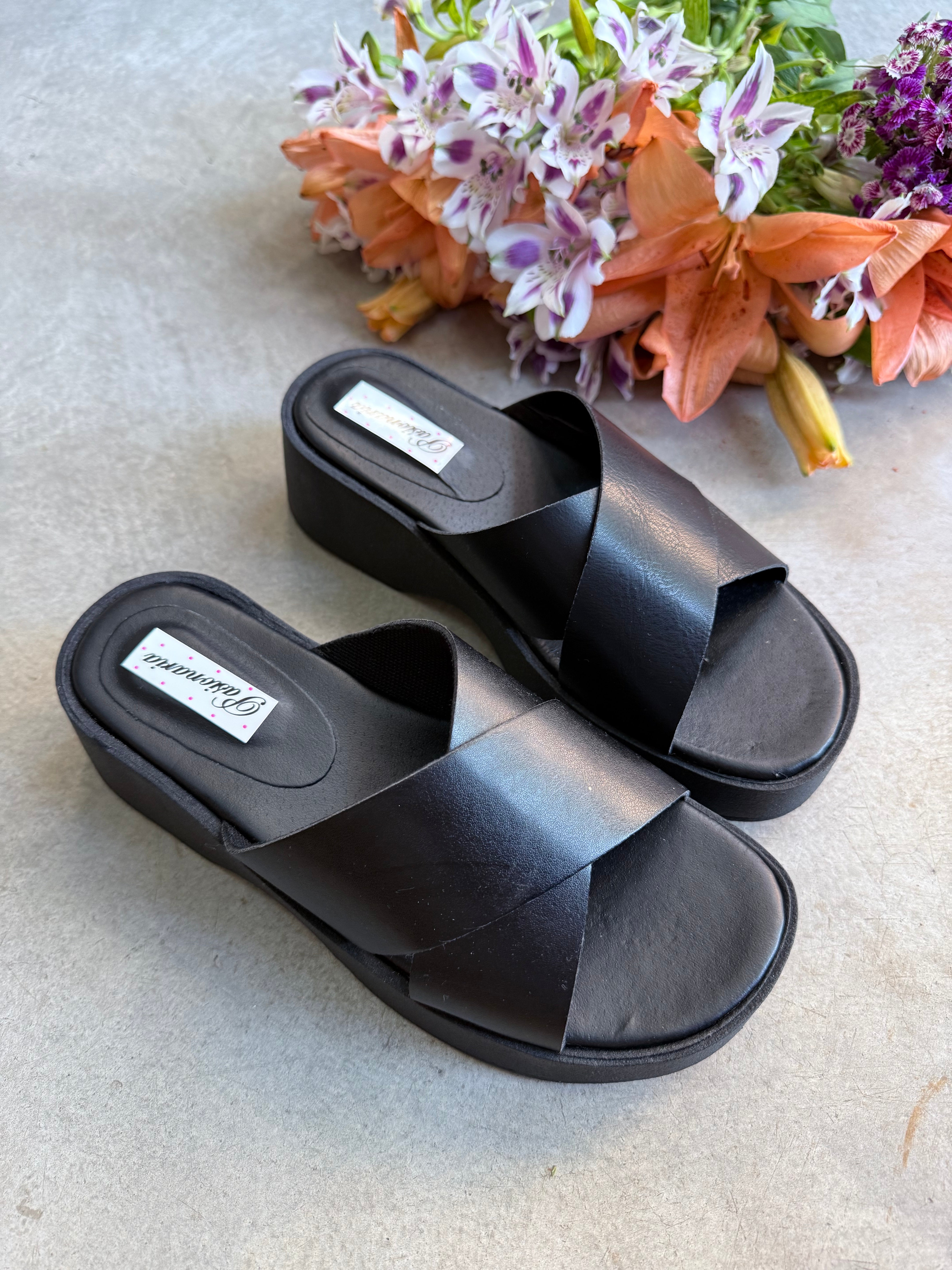 INFORMACIÓN DEL PRODUCTO:-Color: Negro -Material Capellada: P.U. (Cuero Ecológico)-Material Plataforma: Expanso-Base: Gondola-Altura de Plataforma: 2,5 cm.-Altura de Taco: 4 cm.