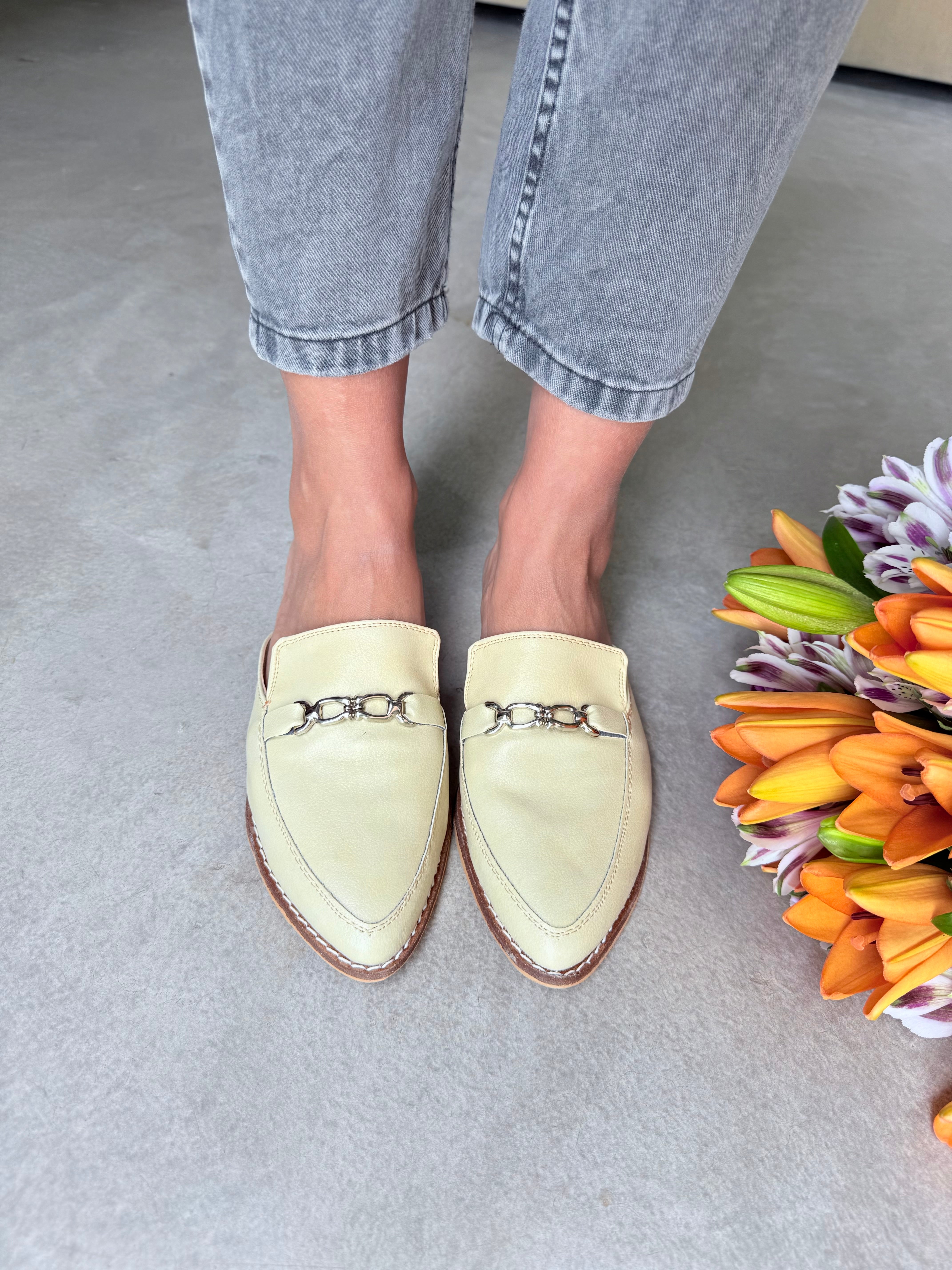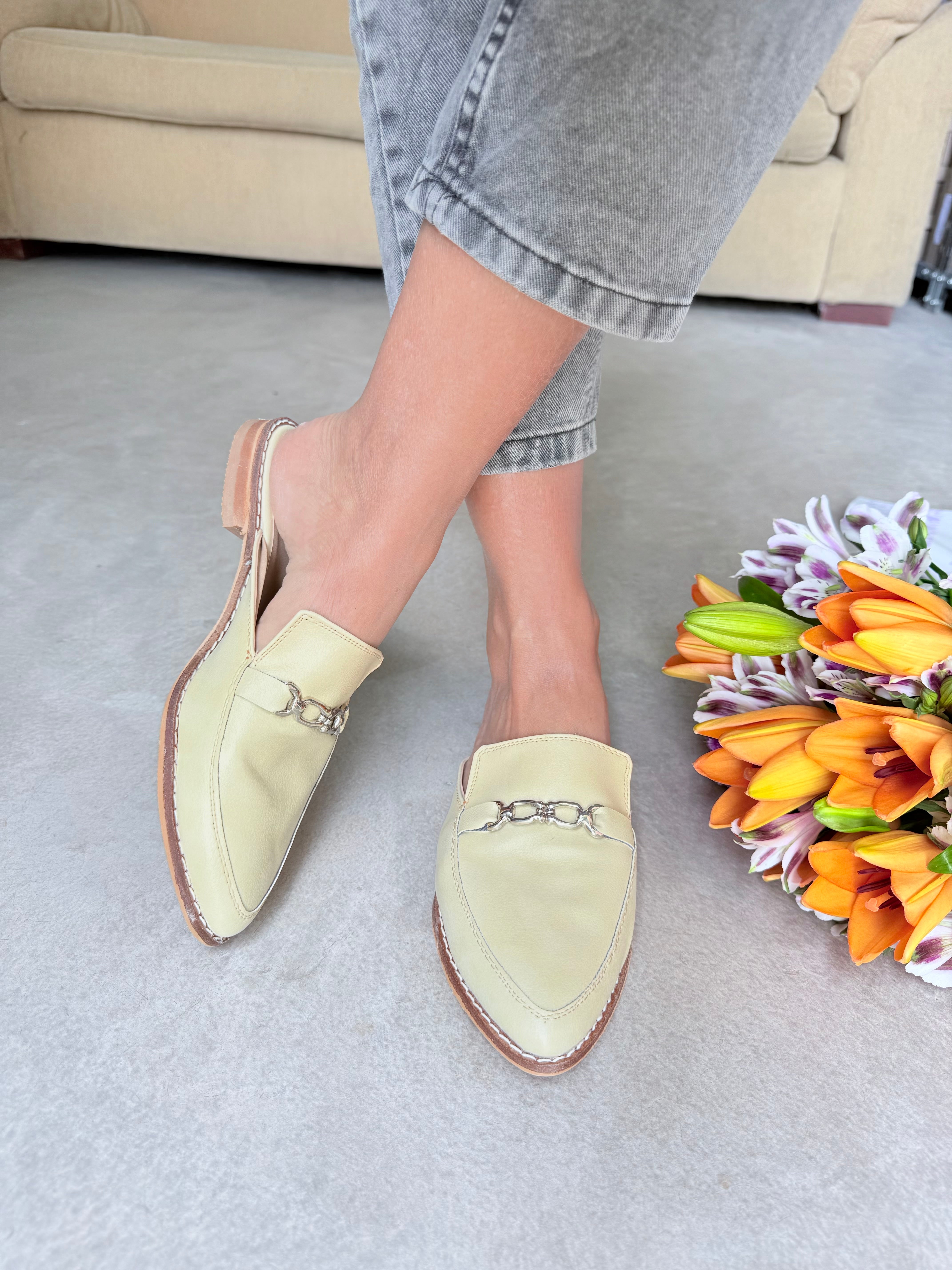 ZUECOS ANTONIETA SIMIL CUERO Tipo SLIPPERS con DETALLE de CADENA