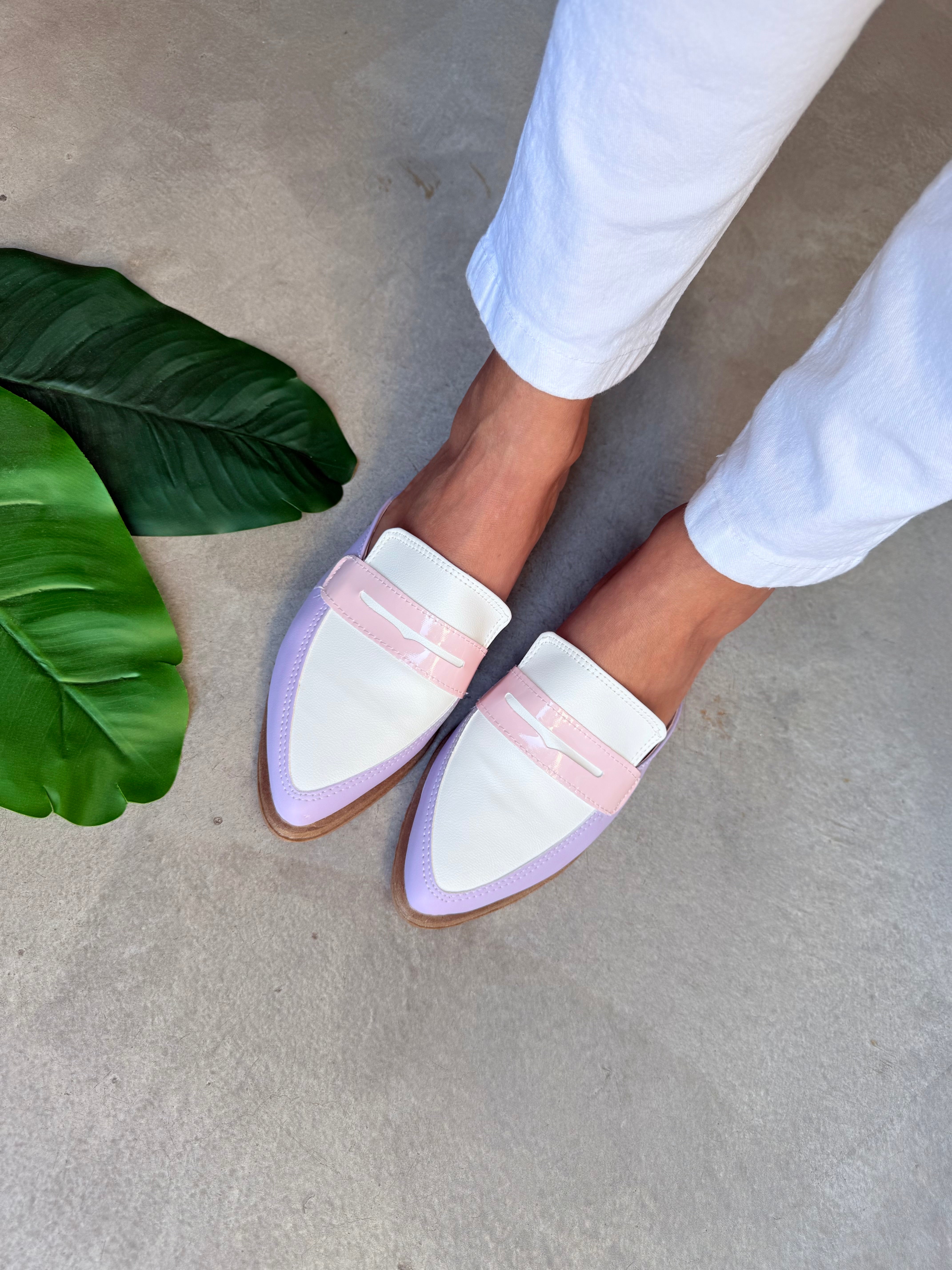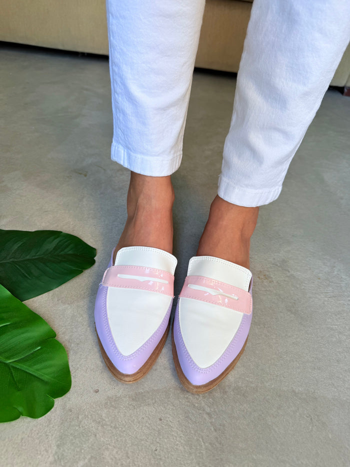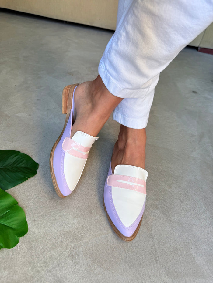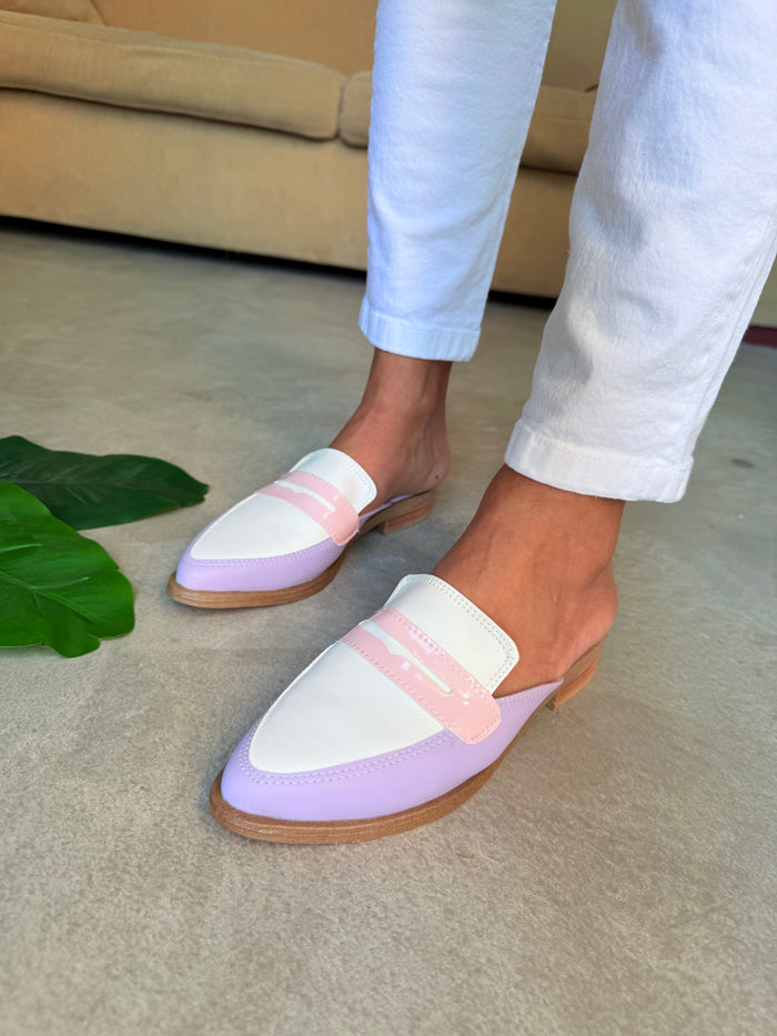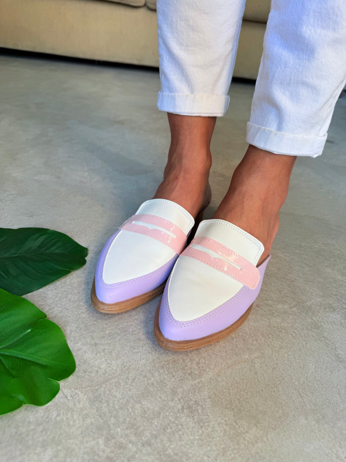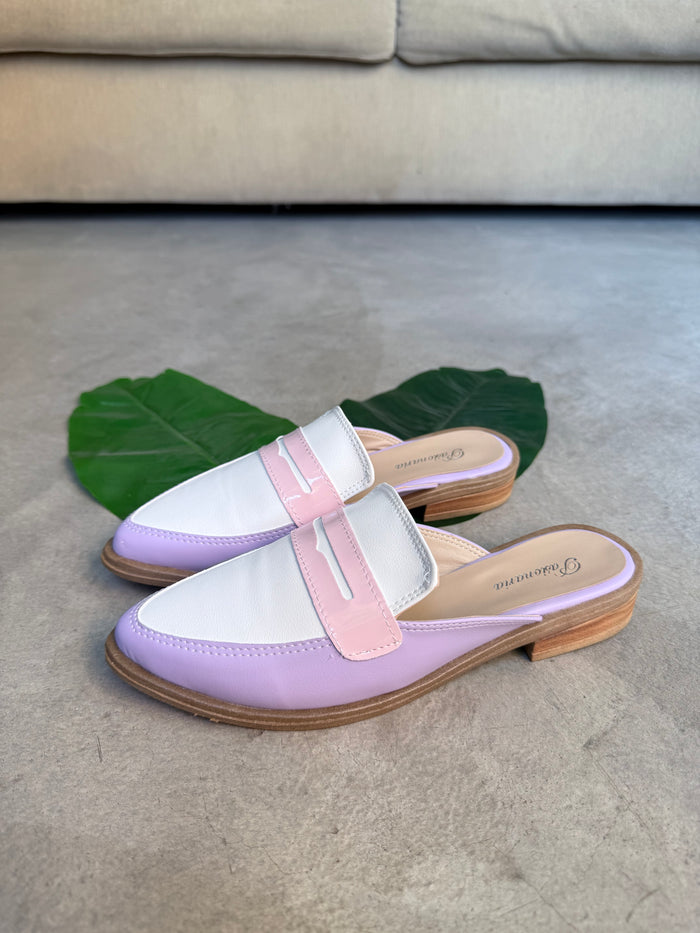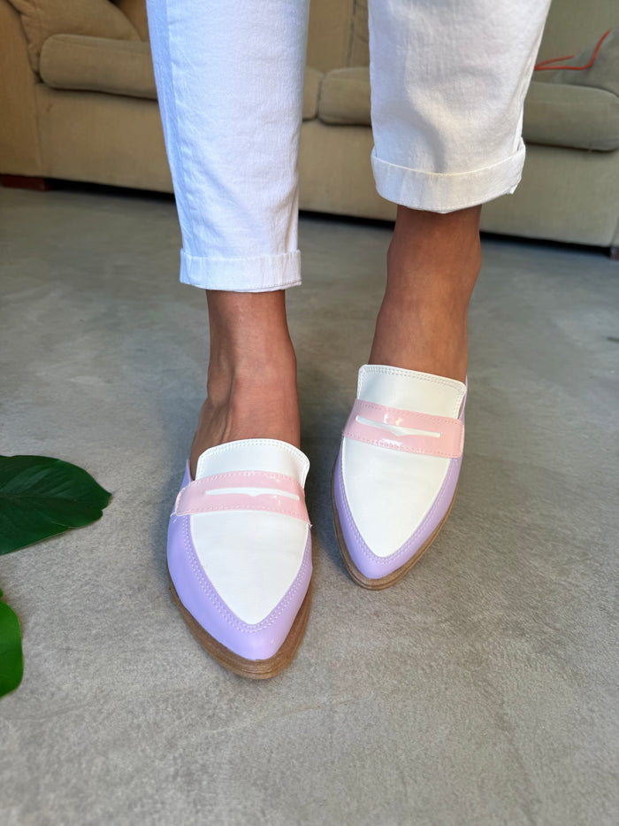 ZUECOS ISABEL LILA y BLANCO Tipo SLIPPERS - (Ed.LIMITADA)