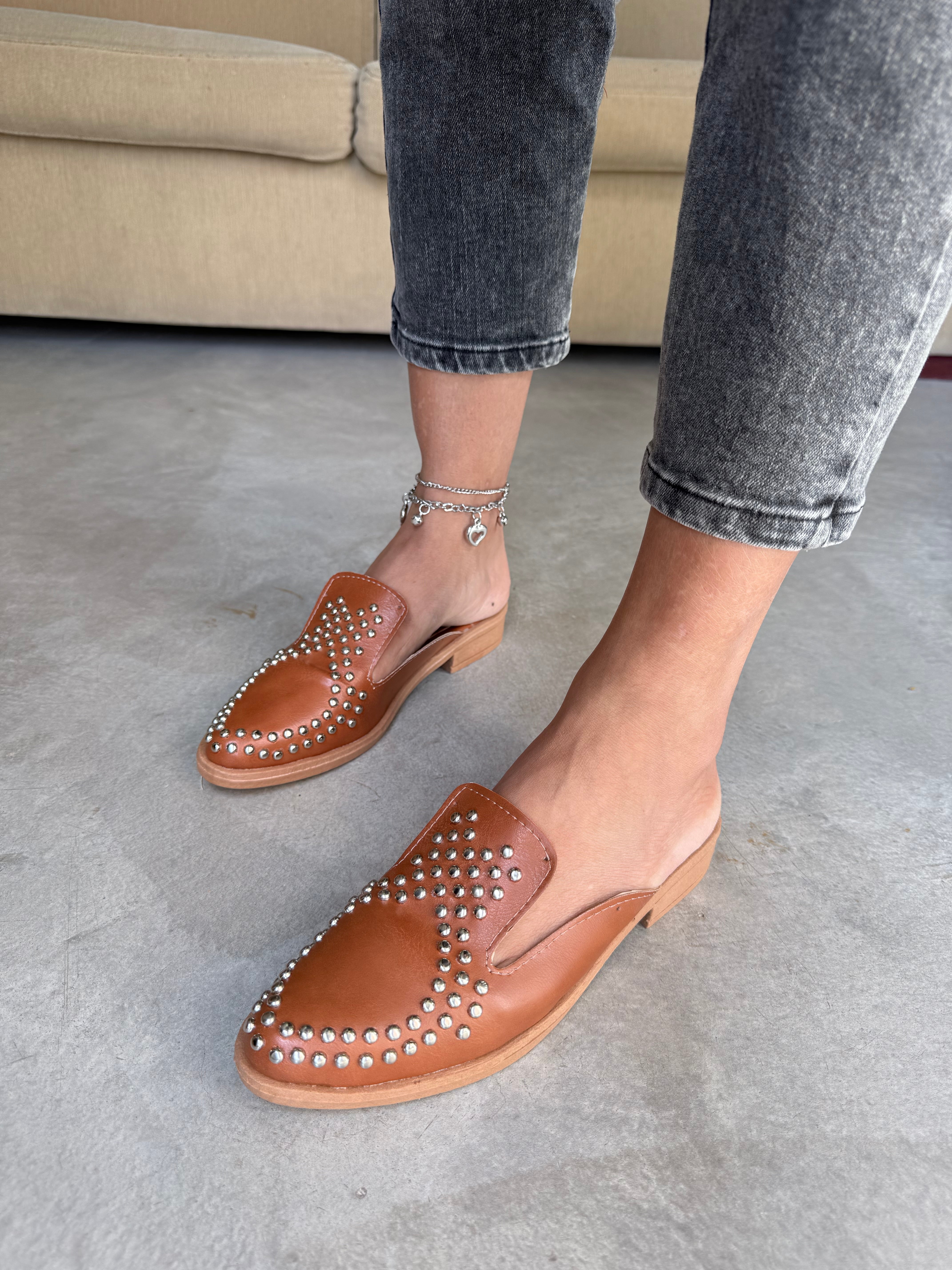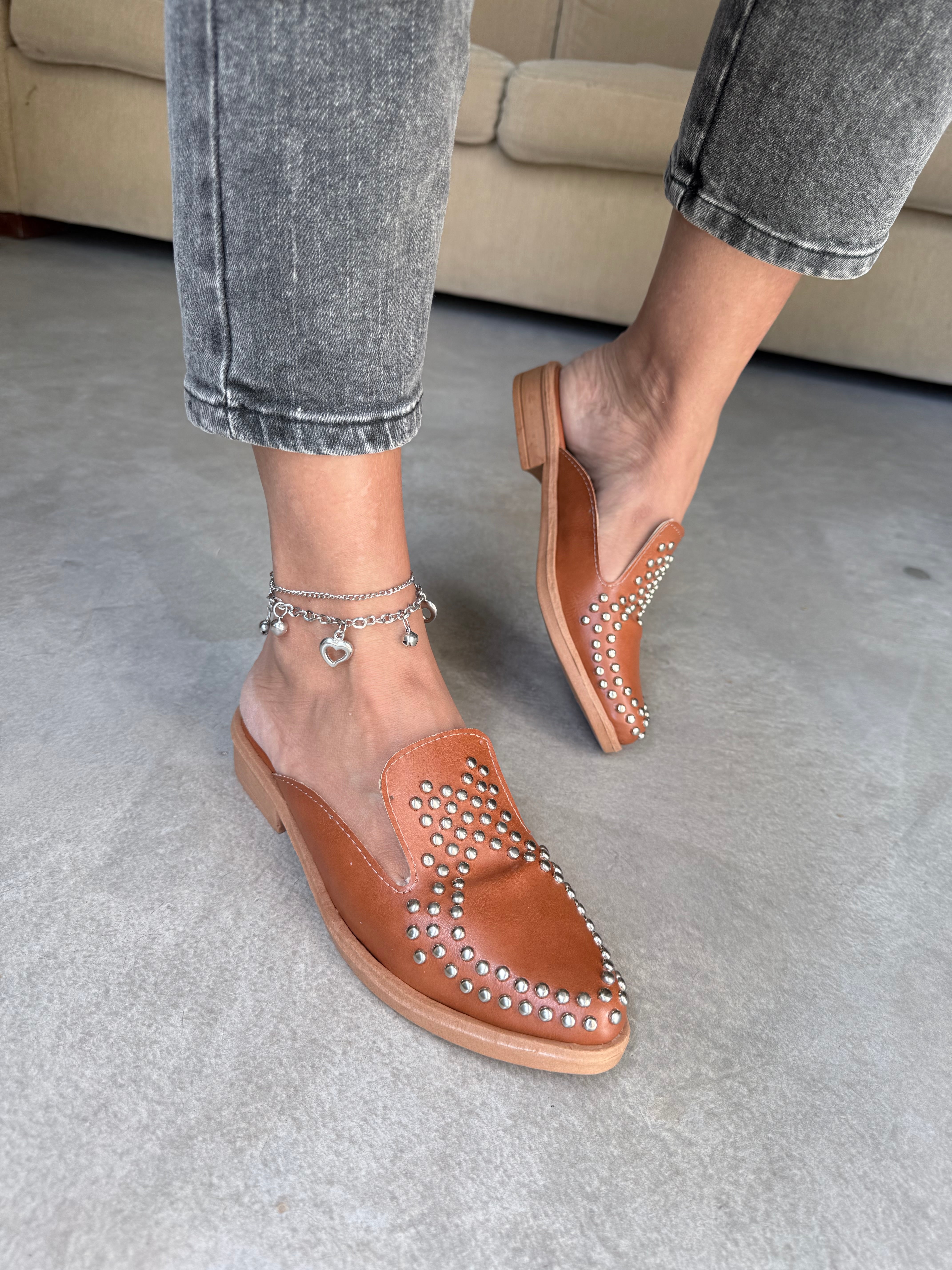 ZUECOS MERI SUELA SIMIL CUERO Tipo SLIPPERS ROCK con DETALLE de TACHAS