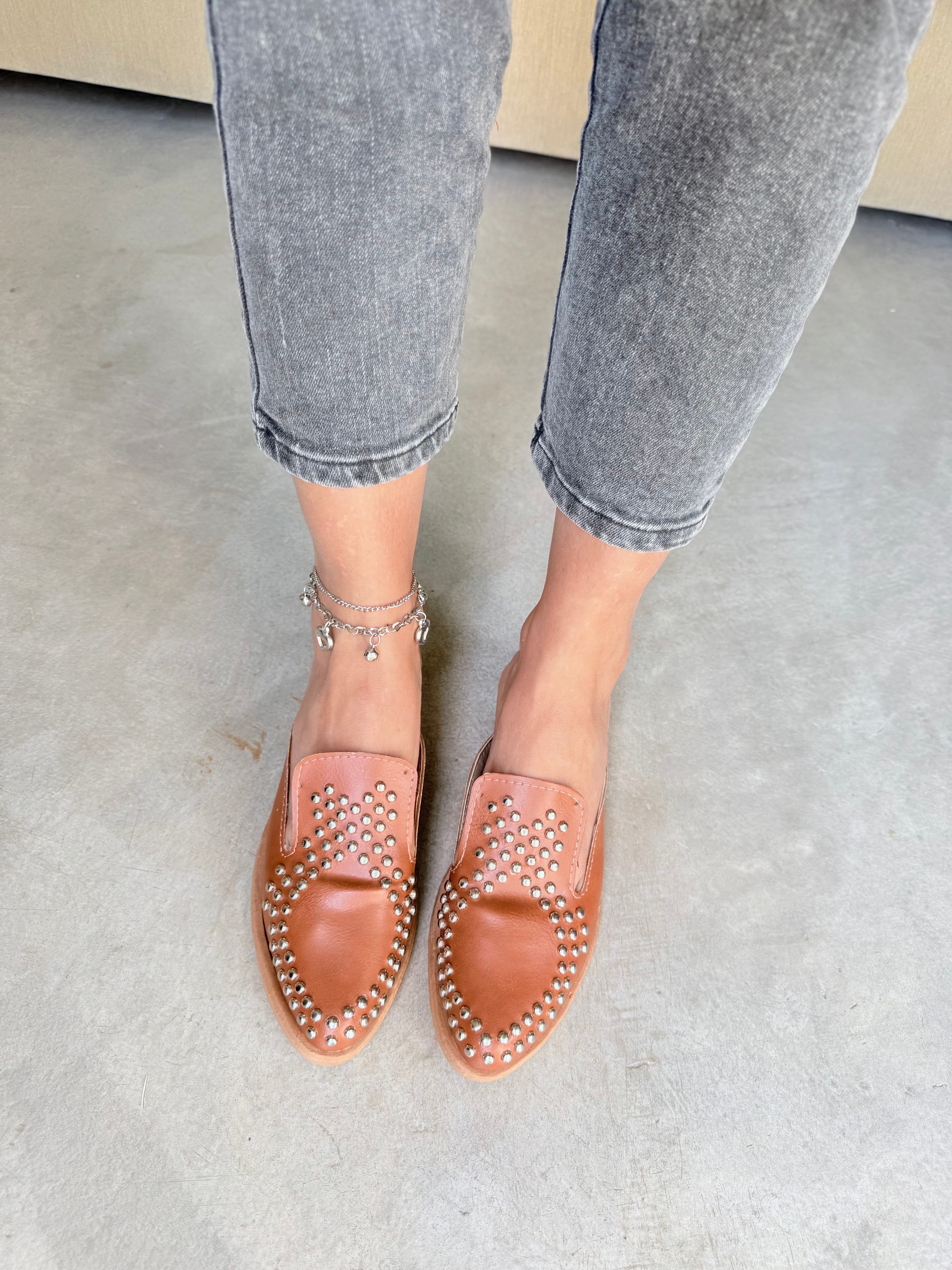 Mod.01 (MERI) INFORMACIÓN DEL PRODUCTO Color: Suela Material: Cuero Ecológico  Detalle: Tachas redondas en color Plata Taco: 2cm. Horma Estándar (Sugerimos tu talle habitual)