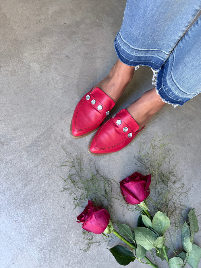 ZUECOS OMIMBI ROJO SIMIL CUERO Tipo SLIPPERS