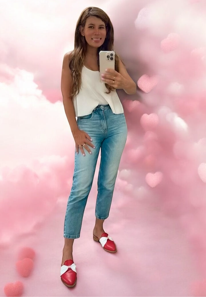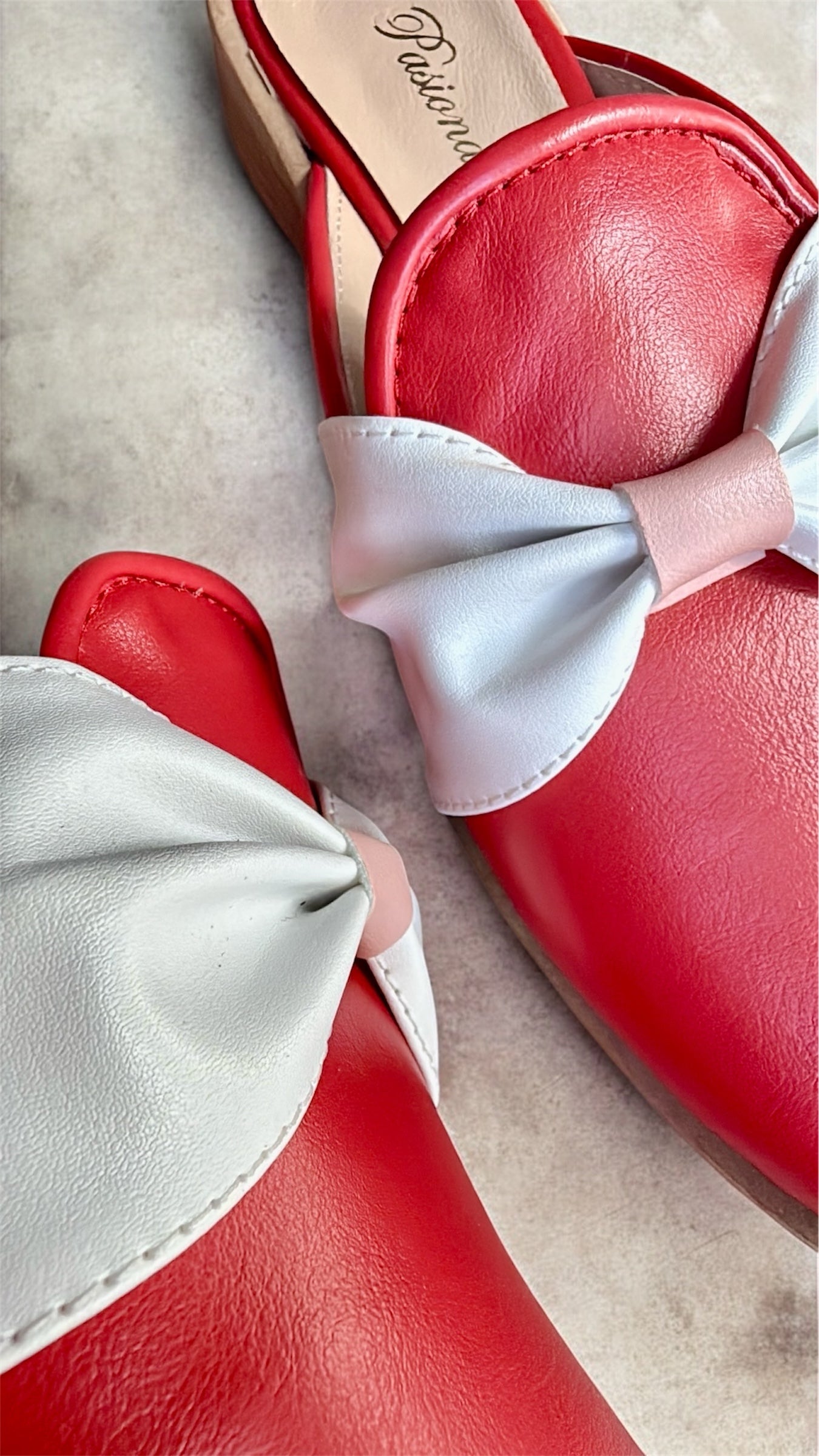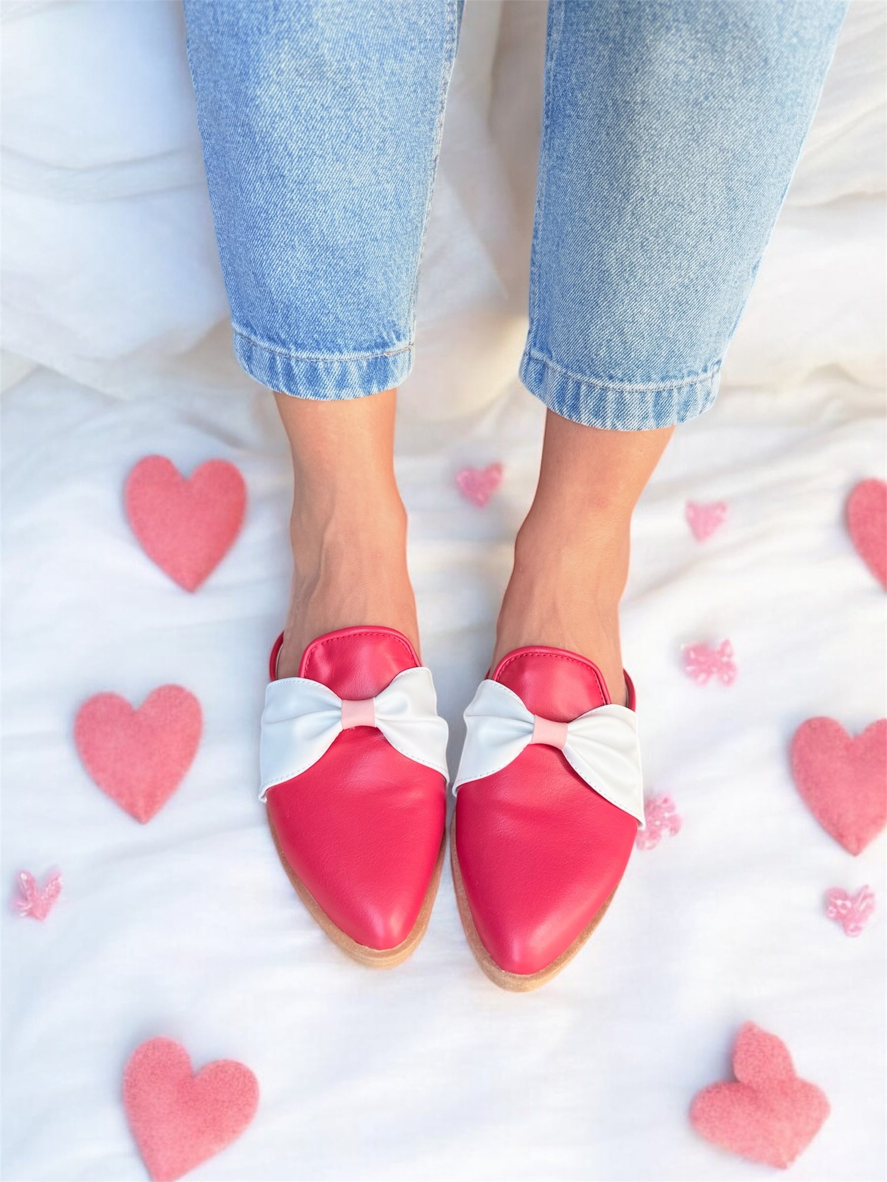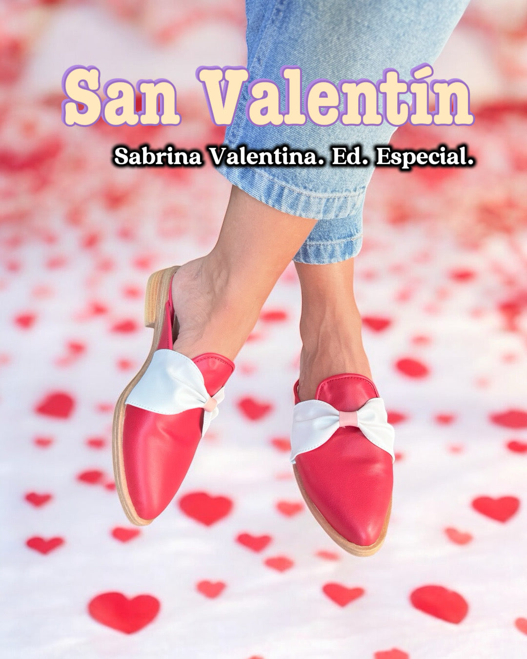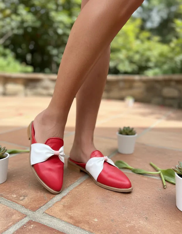 ZUECOS SABRINA VALENTINA ROJO MOÑO BLANCO Tipo SLIPPERS (Ed. Especial- San Valentin.)